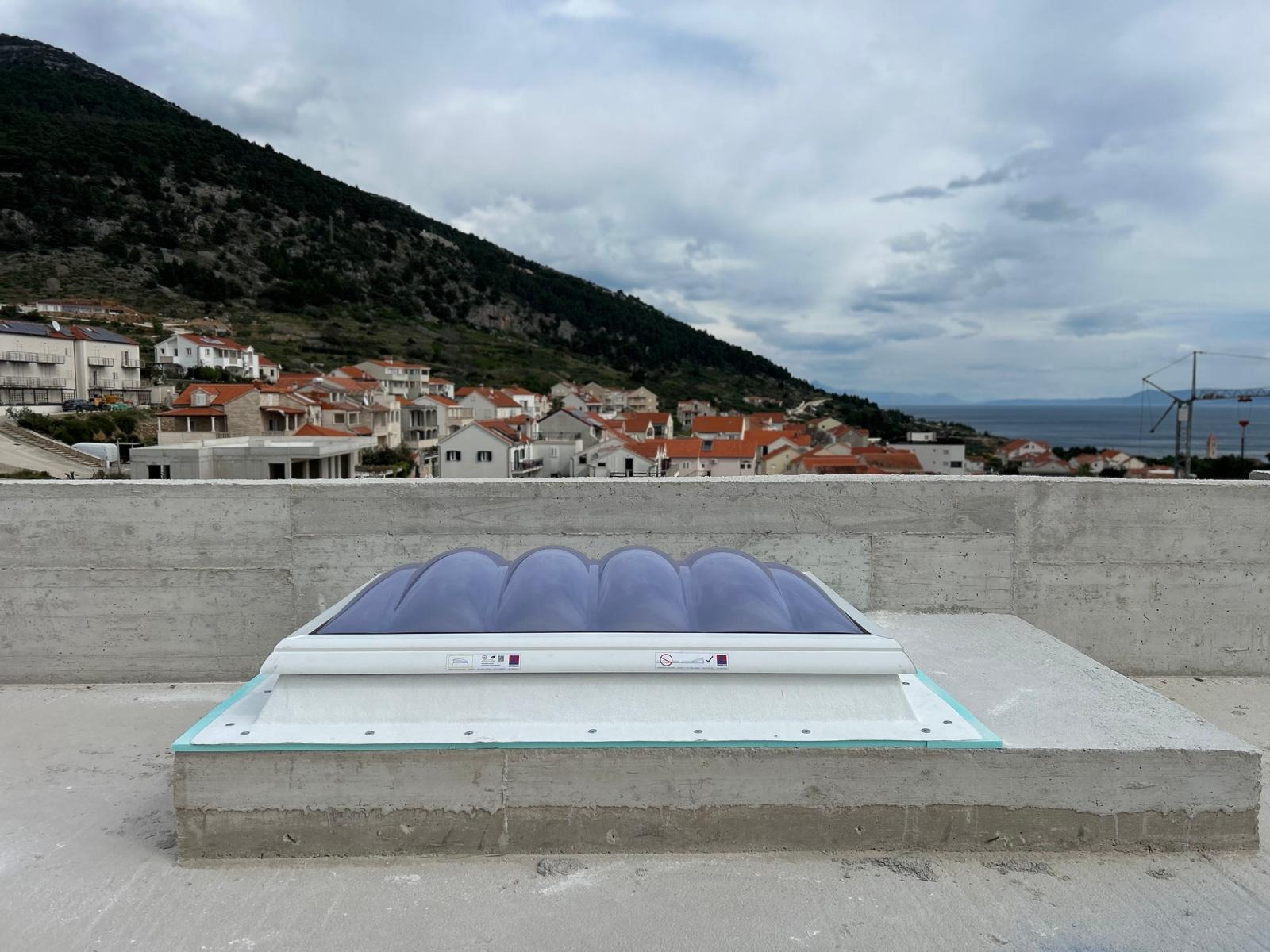 Na objektu obiteljske kuće na otoku Braču ugrađena je LAMILUX F100W svjetlosna kupola dimenzije 120 × 180 cm s funkcijom odimljavanja (SHEV), koja ujedno služi i kao izlaz na ravni krov.