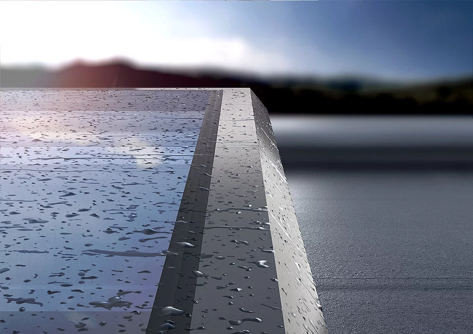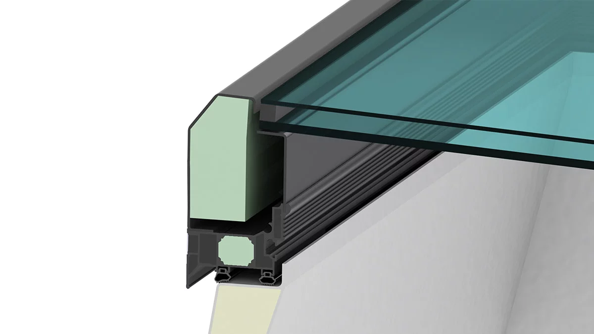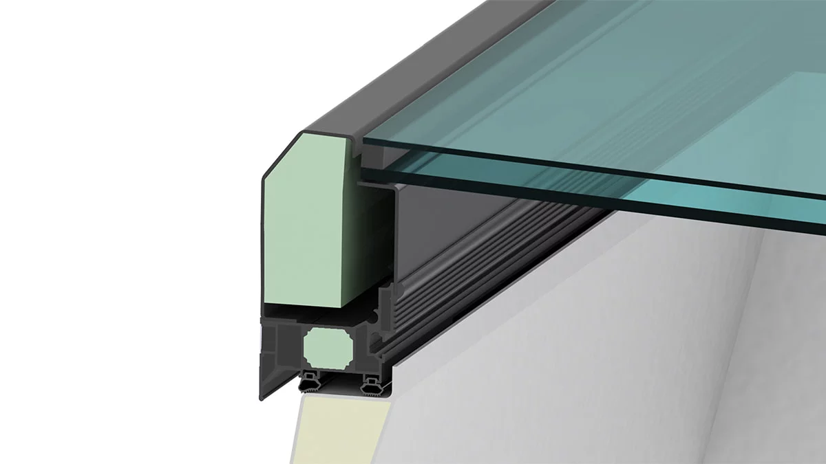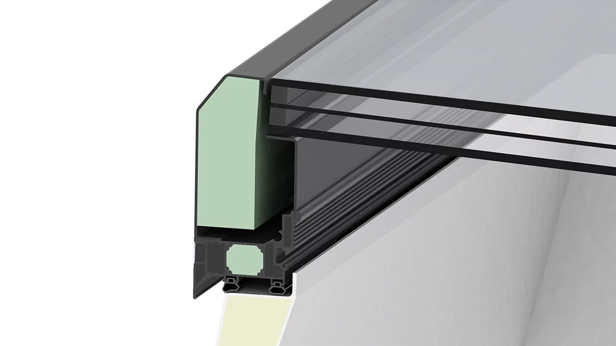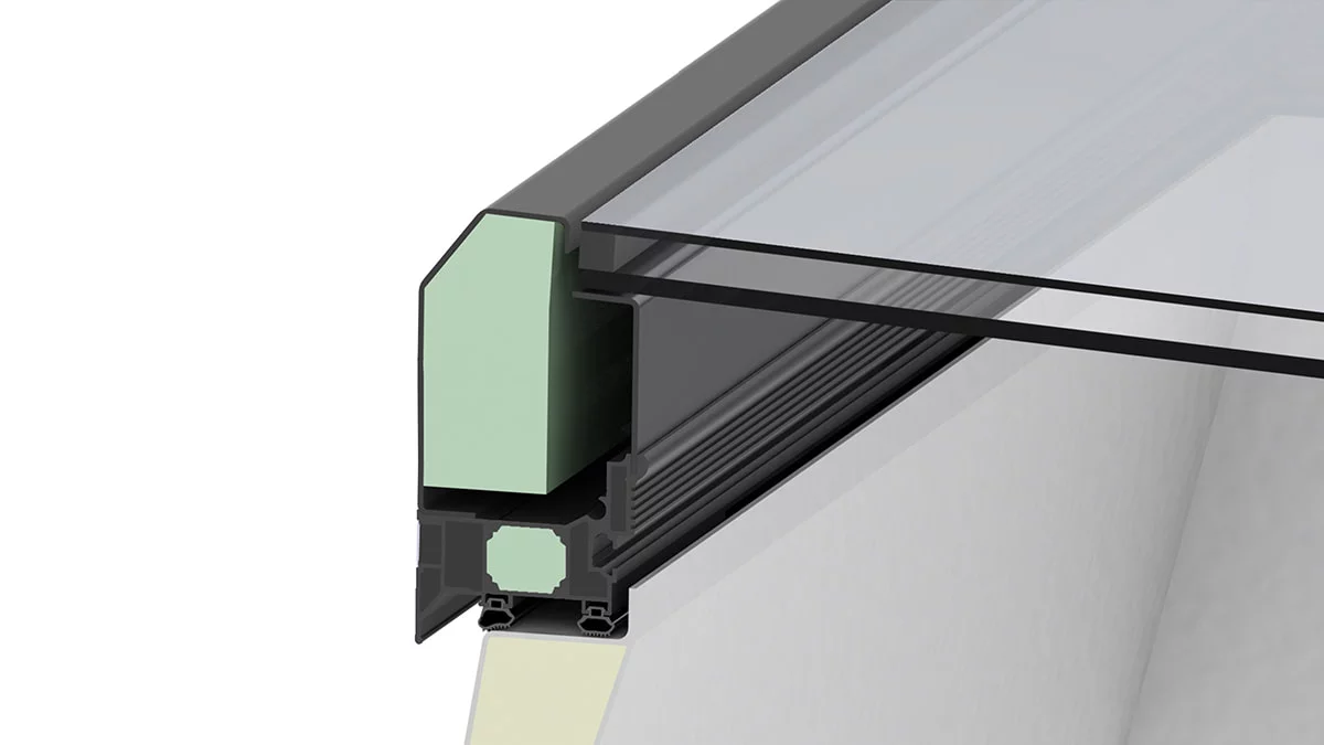 GFK nastavni vijenac i aluminijski okolni profil okvira čine dodatne sigurnosne mjere na ravnim krovovima nepotrebnima. Površinska zaštita u obliku nasipanja šljunka nije potrebna.