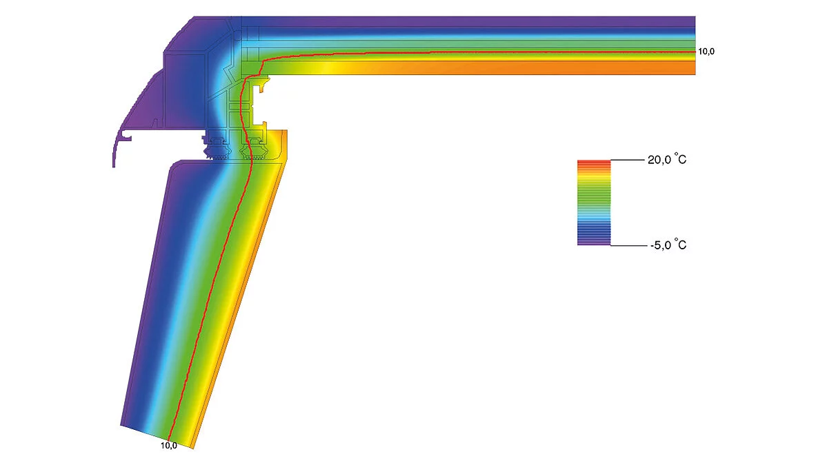 Optimizirane izotermne linije osiguravaju ujednačene zone toplinske izolacije bez slabih točaka kroz cijelu konstrukciju, čime se postiže vrhunska toplinska zaštita i dokazuje optimalna energetska učinkovitost sustava. Ovaj koncept proizvoda bez toplinskih mostova LAMILUX naziva: Potpuno toplinski izoliran proizvod
