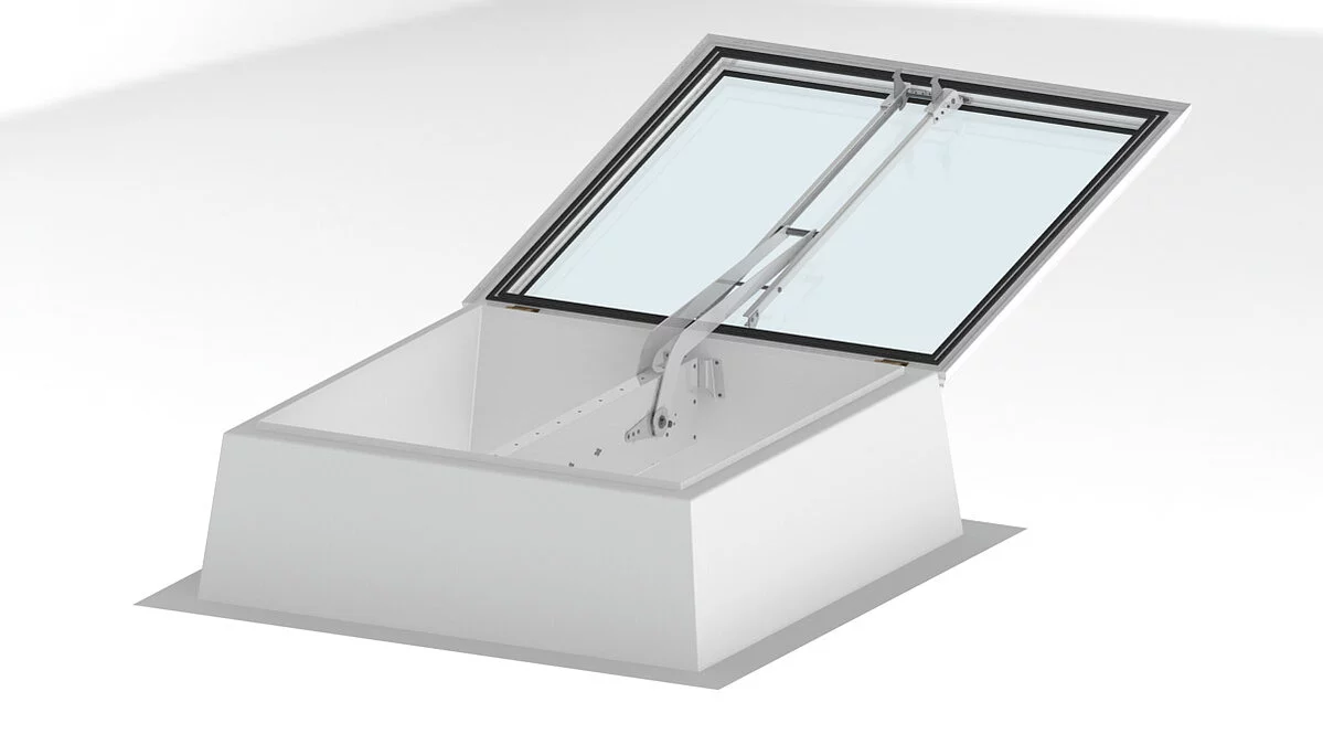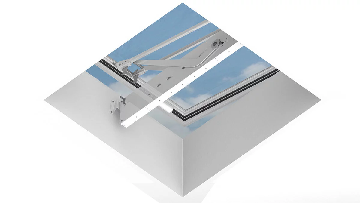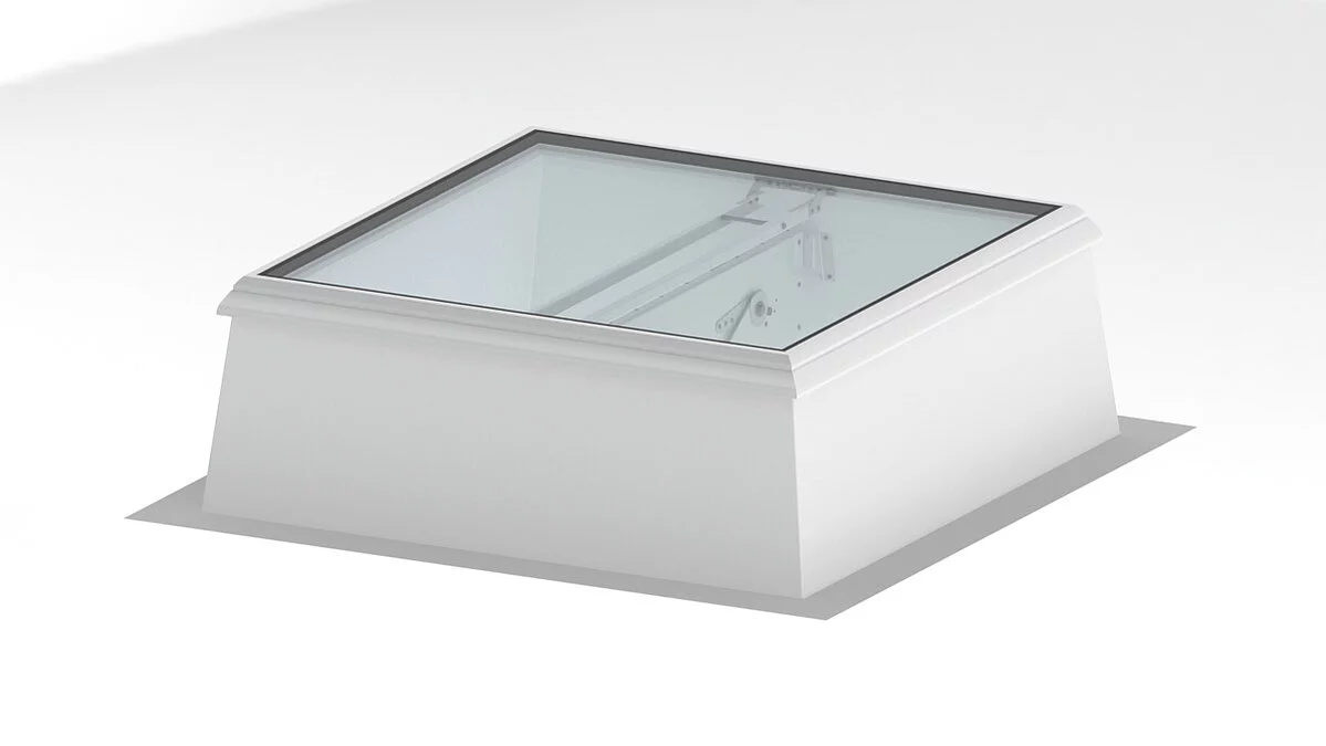 Novo razvijeni ravni krovni prozor Smoke Lift F100 objedinjuje prednosti staklenog krovnog prozora F100 s funkcionalnošću električnog sustava za odvod dima i topline (SHEV) u skladu s normom EN 12101-2.